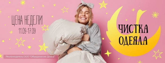 На этой неделе с 11 по 17 сентября 2023 года во всех химчистках «Диана» приемных пунктов Москвы проходит новая акция, в рамках которой: